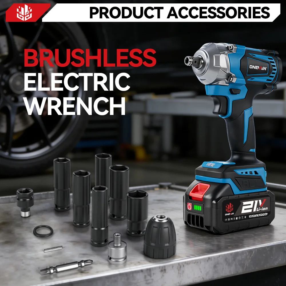 ONEVAN 1200N.M Brushless Electric Impact Wrench 1/2inch Cordless Torque Wrench Screwdriver Power Tool For Makita 18V Battery Pin